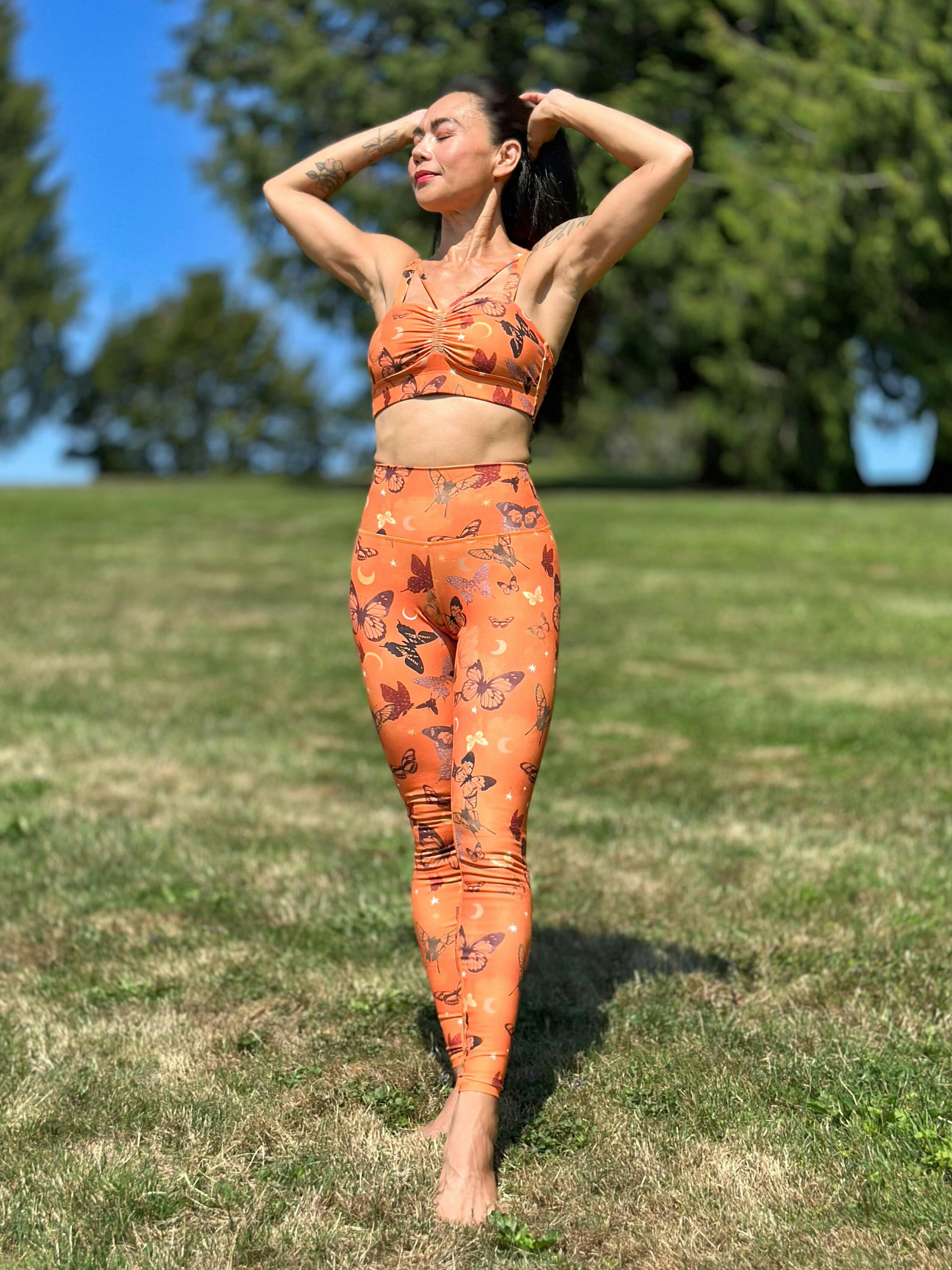 Embrace the enchanting tale of transformation as the caterpillar triumphantly emerges from its cocoon, transforming into a butterfly. Just like our own journey, we face countless trials and hurdles, pushing beyond our boundaries to achieve greatness and realize our dreams. The pattern comes alive with an array of vibrant butterflies, each a symbol of resilience and the power to overcome. Combined with the celestial energy of the moon, stars, and more, the pattern's vibrant orange hues ignite a sense of triumph and accomplishment.