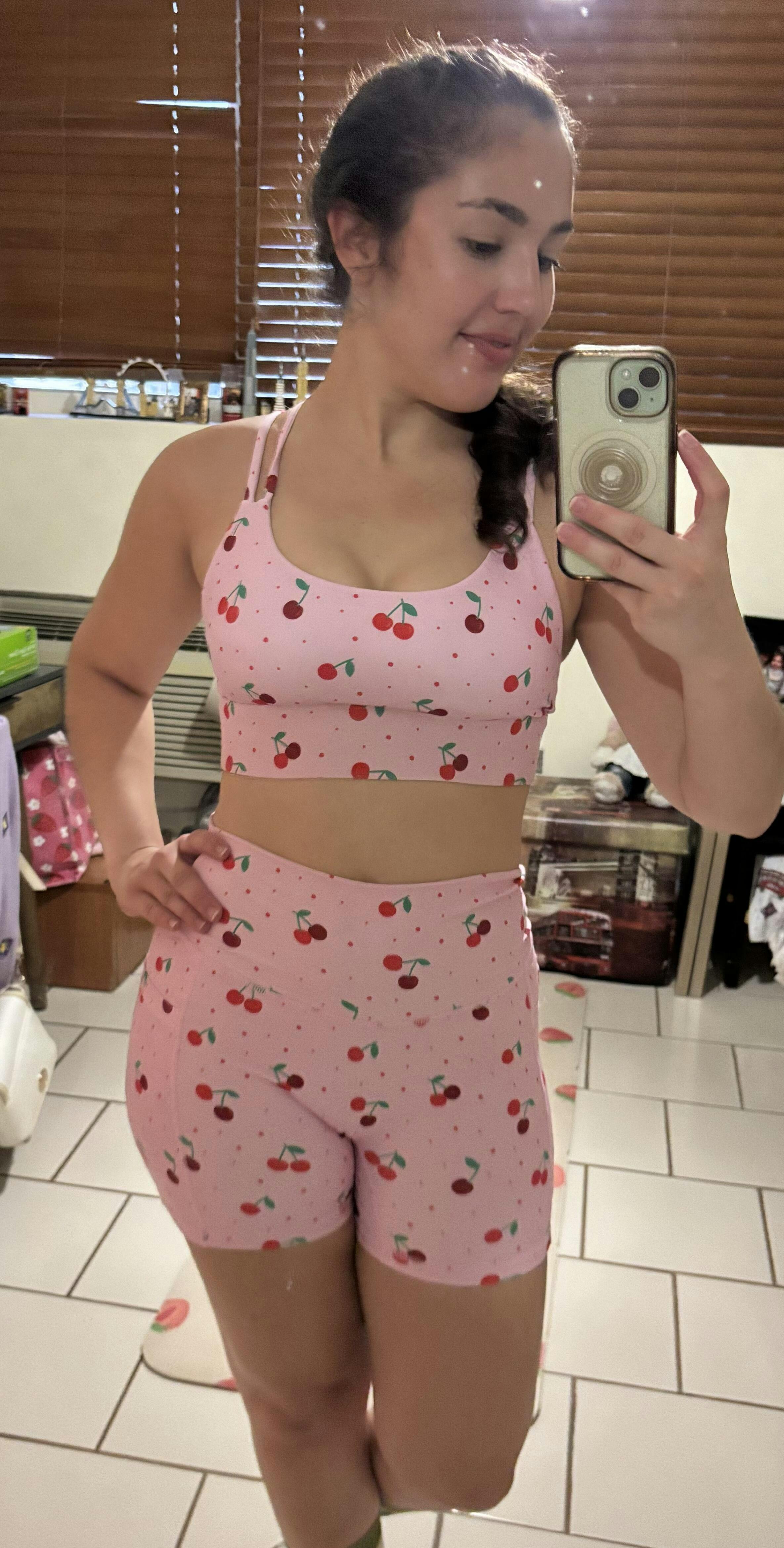 Okay so honestly overall I love the design, the softness of the fabric, and the fit. The shorts are not see through, even for the latina girlies like myself, who tend to be wider and thicker around the hips and thighs (respectively). However, in order to get that great fit, I did had to size up. I’m usually a small (top and bottom) or depending on the brand and fabric small and medium (top and bottom, respectively), but on my first order I did small top, medium bottom in accordance to the size chart and it was pretty difficult to put it on. Like, “stitches snapping as I put it on” kinda difficult, and the shorts rolled up a little, because my thighs are a little thicker. So for this order I got the medium top and large shorts and they fit great. The minor issue was just an ever so slight decrease in support on the chest but honestly it’s not a problem for pilates workouts at least, they just move a little bit more, but it’s not like it feels as though something’s going to slip out.